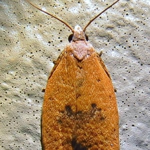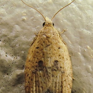 Sparganothoides lentiginosana, the lentiginos moth, is a species of moth of the family Tortricidae. It is found in the United States from Maryland to Florida, west to Arkansas, Texas and Oklahoma, ranging south to Mexico in Tamaulipas and Veracruz. It is found in a wide range of habitats, ranging from urban areas to mixed pine-deciduous woodlands at low elevations. The length of the forewings is 6–6.5 mm for males and 6.3–7.4 mm for females. The ground color of the forewings is yellowish brown to golden yellow (or sometimes brownish orange) with orange or brown scaling. The hindwings are variable, ranging from pale yellowish white to yellowish grey or grey. Adults have been recorded year round, except November and December. There are several generations per year. The larvae have been reared on Malus sylvestris and Achillea millefolium. First instar larvae web the edges of the leaves of their host plant.