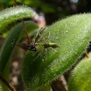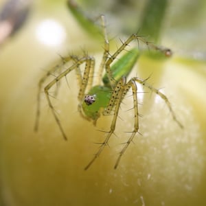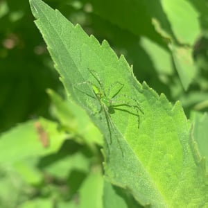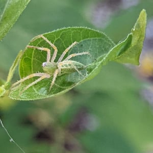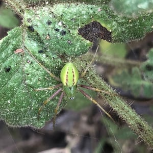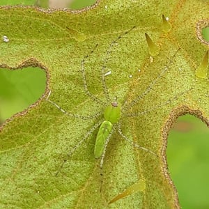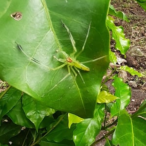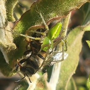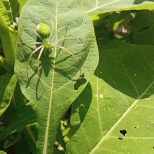 Peucetia longipalpis is a species of spider-hunting spider commonly known as the long-legged lynx spider. It is characterized by its elongated body and long legs, which aid in its hunting and jumping abilities. This species is found in various habitats, including gardens, forests, and grasslands, and is known for its vibrant coloration, ranging from green to yellow or brown. Peucetia longipalpis preys on a variety of insects, using its strong jaws and venom to immobilize its prey.
