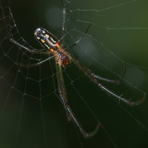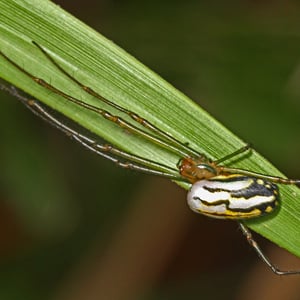 Leucauge argyra is a spider and is known for being the host of the Hymenoepimecis argyraphaga, a Costa Rican or Puerto Rican parasitoid wasp. It is found in Asia, United States and Brazil. Leucauge argyra (and many other Leucauge spp.) is known to be a colonial species, with spiders maintaining individual territories/orb webs within a scaffolding of shared support lines maintained by the group. Colonies of multi-generational individuals are often seen with some levels of size stratification (where larger individuals/adults occupy the highest web positions and smaller individuals/juveniles occupy lower web positions).