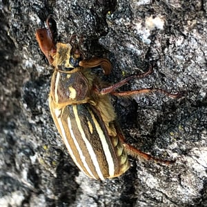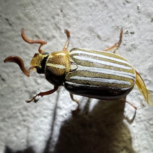 Polyphylla is a genus of beetles belonging to the family Scarabaeidae. These insects are commonly known as flower beetles or rose chafers. They are characterized by their robust bodies, usually measuring around 2-3 centimeters in length, and their vibrant metallic colors, ranging from green to bronze. Polyphylla beetles are primarily found in North America and Europe, where they feed on flowers and foliage.