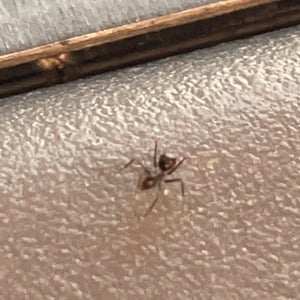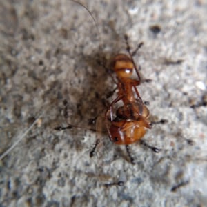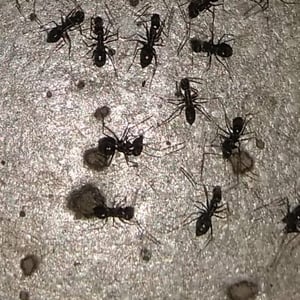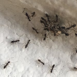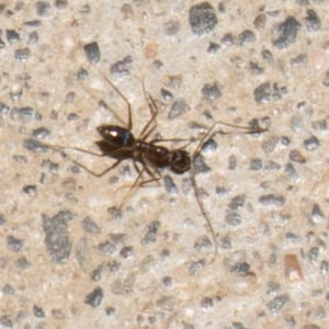 The longhorn crazy ant (Paratrechina longicornis), also known as "black crazy ant", is a species of small, dark-coloured insect in the family Formicidae. These ants are commonly called "crazy ants" because instead of following straight lines, they dash around erratically. They have a broad distribution, including much of the tropics and subtropics, and are also found in buildings in more temperate regions, making them one of the most widespread ant species in the world. This species, as well as all others in the ant subfamily Formicinae, cannot sting. However, this species can fire/shoot a formic acid spray from its abdomen when under attack by other insects or attacking other insects. When the longhorn crazy ant (Paratrechina longicornis) bends its abdomen while aiming at an enemy insect, it is most likely shooting its hard-to-see acid. This acid is normally not used on humans and normally does not affect humans. The black crazy ant can not harm humans in any way. These ants can be touched safely just like the common ghost ants.