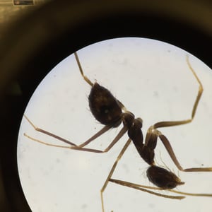 In tropical regions, male and female sexual forms may appear outside colonies at any time of year, but in Florida, they appear between May and September. On a warm damp evening, many males may emerge from the nest and mill about on the ground. Meanwhile, the workers congregate on nearby vegetation, and periodically, a wingless female comes out of the nest, although mating is difficult to observe in the constantly moving mass of ants. Although the males can fly, nuptial flights do not take place. On other occasions, massive numbers of workers sometimes emerge from colonies and carpet the ground. Large areas may be covered by a sheet of workers, many of them carrying brood, with many wingless females scattered among them. The reasons for these gatherings is unclear. Longhorn crazy ants are able to mate with their siblings without showing any of the normal negative effects of inbreeding. Although the queen produces workers through normal sexual means, her daughter queens are her genetic clones and her sons are the genetic clones of her mate. The male and female gene pools thus remain completely separate (assuming workers never reproduce), and this has allowed the longhorn crazy ant to become one of the most widespread invasive species in the tropics. The process, known as double cloning, was discovered by evolutionary biologist Morgan Pearcy of the Université libre de Bruxelles. The species apparently undergoes three larval moults, and their larvae are hairy and present unique morphology; male larvae can be easily distinguished from larvae destined to become workers because of longer and more abundant pilosity.