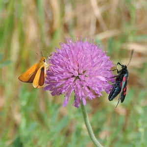 The Lulworth skipper is found locally across southern and central Europe, Asia Minor and North Africa, where its population is considered stable. In northern Europe, its numbers and range have severely declined, most notably in the Netherlands where it is now extinct. This decline has led to the butterfly's European status of "vulnerable". Isolated populations of the species in Armenia are also threatened, although not yet included in the National Red List. It is also listed as threatened under the United Kingdom Biodiversity Action Plan. In Great Britain, where the butterfly reaches the northern limit of its range, its distribution is restricted to the southern coastline of the county of Dorset. Here, both the population and range have changed little in recent decades; it is locally abundant, with the majority of colonies found on the coast between Weymouth and Swanage and on the Purbeck Ridge, a line of inland chalk hills. Two outlying colonies also exist, at Burton Bradstock and on the Isle of Portland; the cause of the colony on Portland is unknown, but has been put down to either natural colonisation or released specimens. There is evidence to suggest that the Lulworth skipper is now more abundant in Dorset than at any other time since its discovery in 1832. Although colonies of Lulworth skippers existed in Devon, the species has, beyond single records, not be seen in the county since the 1930s. Similarly, records of occurrences exist for Cornwall, but they have not been verified as native colonies. Habitats are primarily on unfertilised calcareous grassland; this includes chalk download, coastal grassland and undercliffs in Britain. In all of these habits Tor-grass (Illustration 2), the butterfly's sole food plant and that on which it lays eggs, is widespread. Tall, ungrazed grass is a favoured habitat due to oviposition and larval development; Lulworth skippers have benefited from the move away from tight grazing by sheep in the last century and recently outbreaks of myxomatosis among rabbit populations, which otherwise maintain a lower grass height. However, there is evidence to suggest that minimal grazing is not detrimental to the species, and may in fact be beneficial in that it encourages the growth of flowers that act as adult nectar sources.
