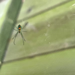 Leucauge argyrobapta, commonly known as the silver orb-weaver spider, is a species of orb-weaving spider found in tropical and subtropical regions. It is characterized by its silver-colored abdomen with intricate patterns of black and white markings. These spiders construct large, circular webs to catch their prey, primarily consisting of flying insects. Leucauge argyrobapta is known for its impressive web-building skills and its ability to adapt to various habitats.