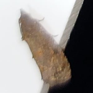 The wingspan is 15–22 mm. Forewings brownish to reddish brown. A dark-brown pre-tornal spot is distinctive in females, but faded in males. Males possess sex scales on the hindwing, hind tibia, and abdomen. Females with a costal fold on forewings, which is absent in males. Eggs are white, round and flat, and laid in small groups of 15 on the fruit. Late instars are 13–20 mm long. The abdomen of the caterpillar is yellowish white. In the final instar, its color turns to red. Pinacula large and darker than body. Head and prothoracic shield blackish to dark brown in early instars which turns pale to yellowish brown in final instars. Anal comb rudimentary with 4-6 small teeth. Pupa yellow brown.