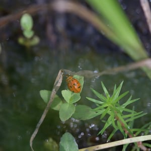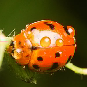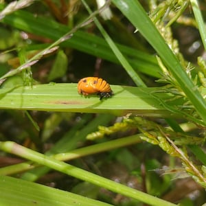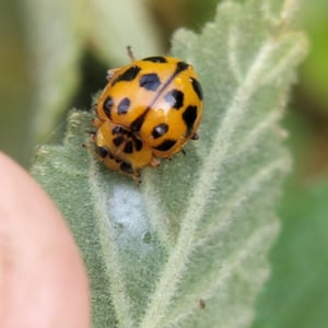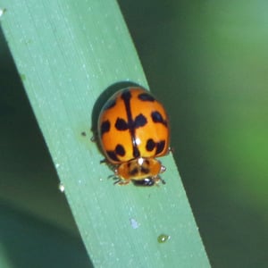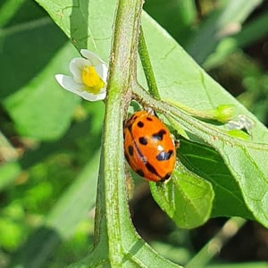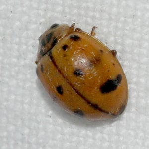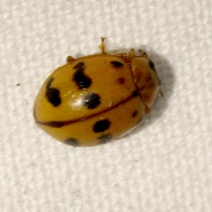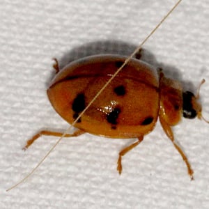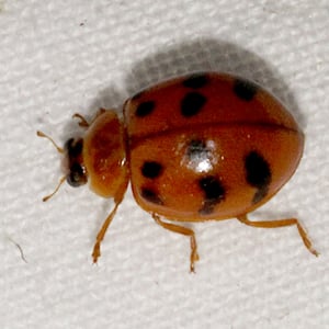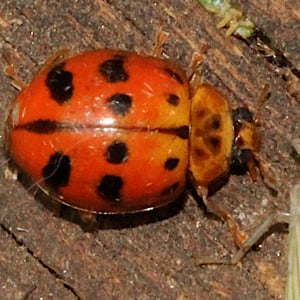 Harmonia octomaculata, commonly known as the eight-spotted lady beetle, is a small insect belonging to the family Coccinellidae. It is characterized by its oval-shaped body and vibrant coloration, with a black base and eight distinct red spots on its elytra. This species is widely distributed across North America and is known to feed on aphids and other small insects, making it a beneficial predator in agricultural and garden ecosystems. The eight-spotted lady beetle is considered a valuable natural enemy of pests and is often used in biological control programs.