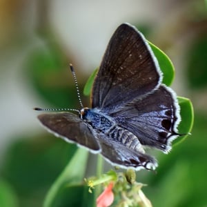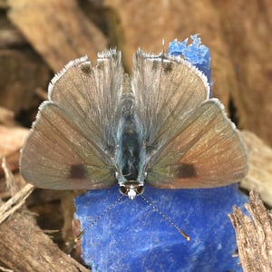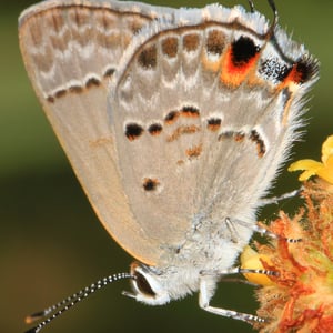 Strymon istapa the mallow hairstreak, mallow-scrub hairstreak, dotted hairstreak or Hewitson's hairstreak. This diurnal butterfly is a widespread species that can be found in xeric habitats throughout the southern United States, Central America, parts of the Caribbean (including Cuba and Grand Cayman), and rarely in South America. This species can be spotted in rural and suburban areas in which human infringement has created open fields or tracks of overgrown weeds as a result of land clearing. These butterflies are often seen rubbing their hindwings together presumably to attract attention to their antenna mimicry scales located on the outer margin of the hindwing.