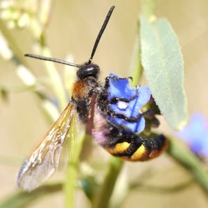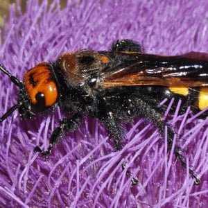 The mammoth wasp (Megascolia maculata) is a very large wasp (the largest in Europe), with the female reaching up to 6 centimetres (2.4 in), whereas the male is smaller. The species can be seen in warm weather, from May to September.