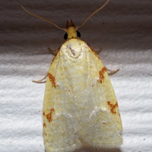 The maple-basswood leafroller (Sparganothis pettitana) is a moth of the family Tortricidae. It is found in eastern North America, from Nova Scotia to Florida, west to Texas. The wingspan is about 20 mm. Adults are on wing from May to July. There is one generation per year. The larvae feed on the leaves of apple, basswood and maple. They hide and feed inside a rolled leaf or leaf-tip. Pupation occurs inside the leaf rolls.