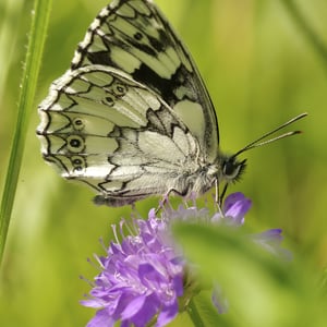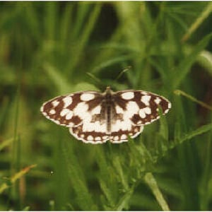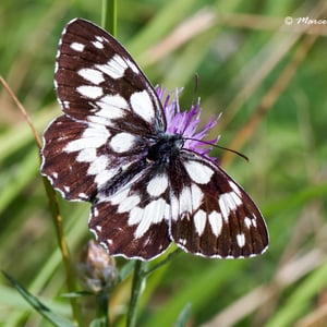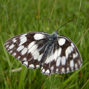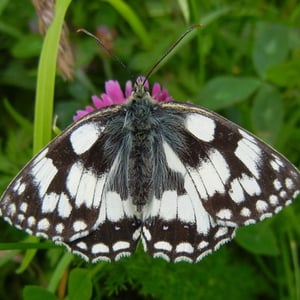 Melanargia galathea, the marbled white, is a medium-sized butterfly in the family Nymphalidae. Despite its common name and appearance, this butterfly is one of the "browns", of the subfamily Satyrinae. This species can be found across most of Europe, southern Russia, Asia Minor and Iran. It is found in forest clearings and edges, meadows and steppe where it occurs up to 1500 - 1700 m above sea level. The caterpillars feed on various grasses.