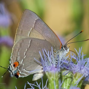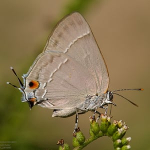 Rekoa marius, the Marius hairstreak, is a butterfly in the family Lycaenidae. It is found from Paraguay north to Sonora in Mexico. Strays may be found as far north as southern Texas. The species used to be considered rare in the southern Texas. It is the species of Rekoa found in Arizona. The habitat consists of disturbed tropical areas. The wingspan is 22–32 mm. The upperside of the males is dark iridescent blue. Females are gray. The hindwing has an orange eyespot near the tail. Adults are probably on wing year round in Mexico. In southern Texas, there is one flight with adults on wing from September to December. They feed on flower nectar. The larvae feed on various plants, including legumes and malpighias.