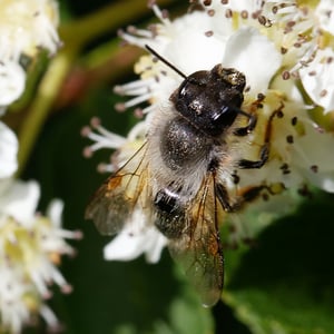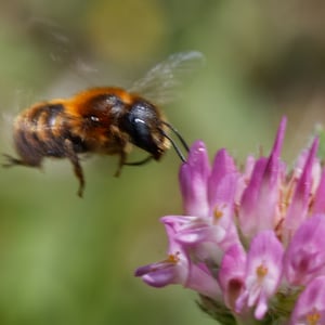 Osmia is a genus of solitary bees commonly known as mason bees. They are known for their efficient pollination abilities and are often used as alternative pollinators in agriculture. Osmia bees are typically small to medium-sized, with a stout body and a metallic sheen. They construct their nests in pre-existing cavities, such as hollow plant stems or holes in wood, using mud or chewed plant material to create individual cells for their eggs.