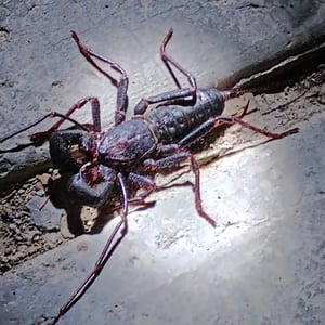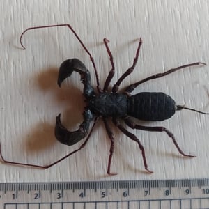Mastigoproctus is a genus of whip scorpions. Native to the tropical forest regions of northern South America, these whip scorpions can reach a length of up to 9 cm and can weigh over 30 g. Despite popular belief, they are not venomous as, like all other whip scorpions, they do not possess venom glands.