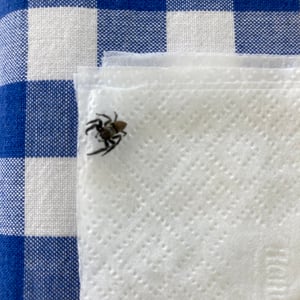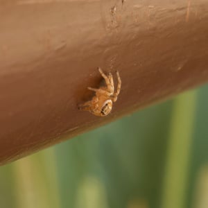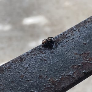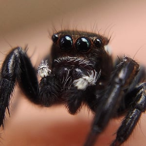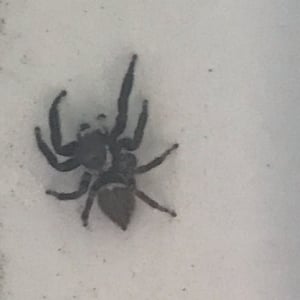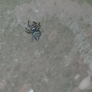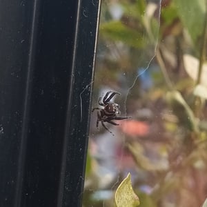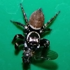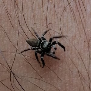 Evarcha jucunda is a species of jumping spider. It occurs naturally in the Mediterranean region, but was introduced to Belgium. It is also sometimes found in German greenhouses. Typically, it shows a large white or yellowish band surrounding the head region and a smaller one at the anterior end of abdomen. Males are black with a white line around their head and the top of their abdomen, which is brown.