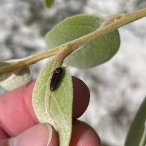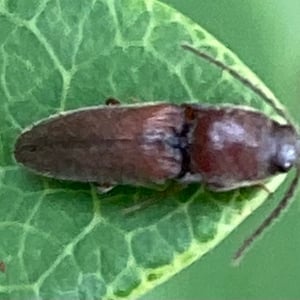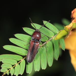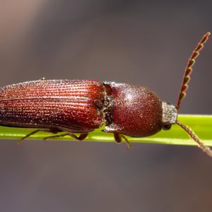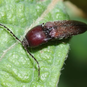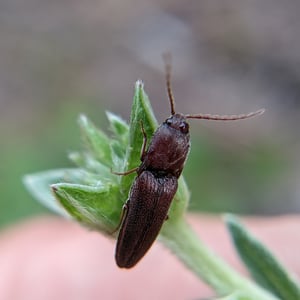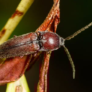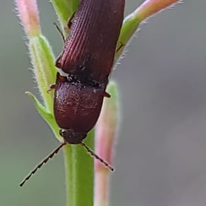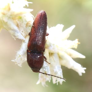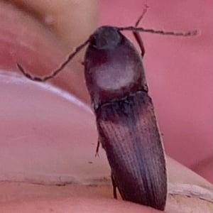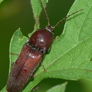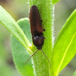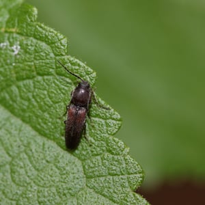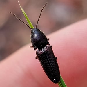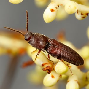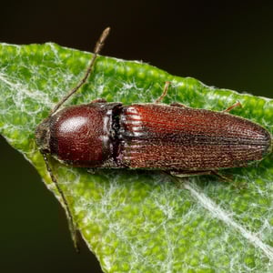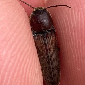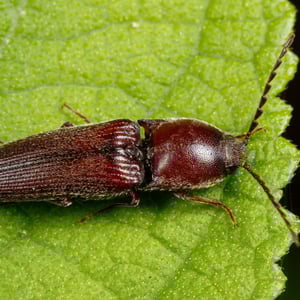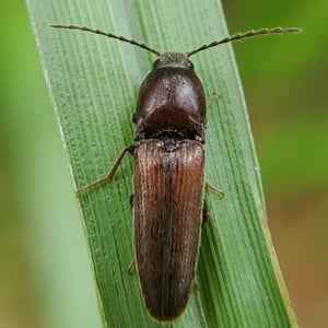 Melanotus clandestinus is a small, nocturnal insect belonging to the family Elateridae, commonly known as click beetles. It measures around 1.5 centimeters in length and has a slender, elongated body. The species is characterized by its dark brown or black coloration, which helps it blend into its habitat. Melanotus clandestinus is primarily found in forested areas and is known for its ability to produce a clicking sound by snapping its thorax, which it uses as a defense mechanism.