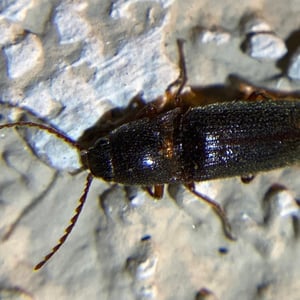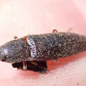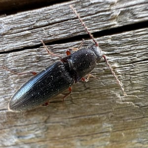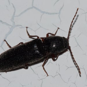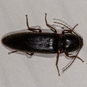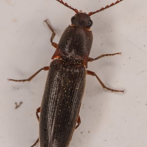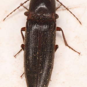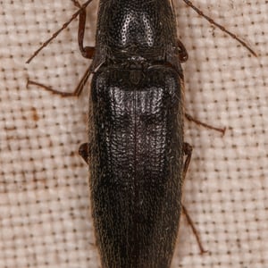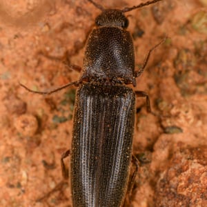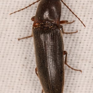 Melanotus longulus is a species of beetle belonging to the family Elateridae. It is commonly known as the slender click beetle due to its elongated body shape. This insect is typically black or dark brown in color and measures around 10-15 millimeters in length. Melanotus longulus is known for its ability to produce a clicking sound by snapping its thorax against its abdomen, which is used as a defense mechanism to startle predators.