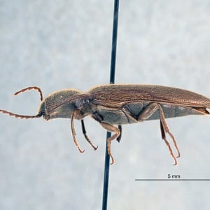 Melanotus is a small beetle belonging to the family Elateridae. It is commonly known as the click beetle due to its ability to produce a clicking sound when it flips itself upright. The body of Melanotus is elongated and typically black or dark brown in color. It is found in various habitats, including forests, grasslands, and agricultural fields.