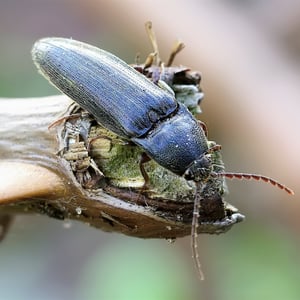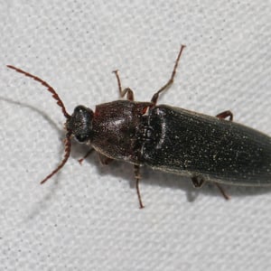 Melanotus villosus is a species of insect commonly known as the hairy click beetle. It belongs to the family Elateridae and is found in various regions of North America. This insect is characterized by its dark brown or black coloration and its densely hairy body, which provides it with camouflage and protection. The hairy click beetle is known for its ability to produce an audible clicking sound by flexing its body, which is used as a defense mechanism to startle predators.