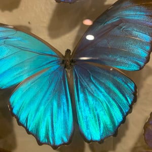 Morpho menelaus is unique because of its iridescent blue color and large wingspan. They are one of the most familiar and recognizable neotropical insects. Over the past century, there has been an accumulation of these butterflies in both private and museum collections, and are considered highly valuable among collectors, artists, and designers for their beautiful coloration and are widely hunted or bred for decorative purposes. Because of the popularity of collecting and rearing Morpho species for sale, there is a wide discrepancy in its taxonomic understanding among collectors.