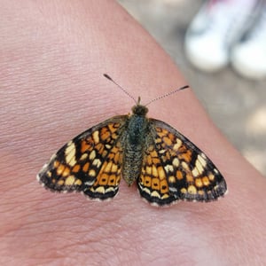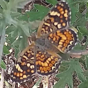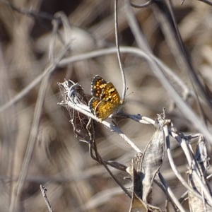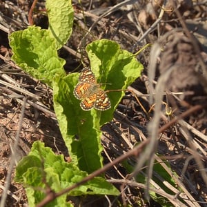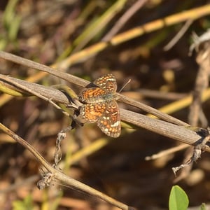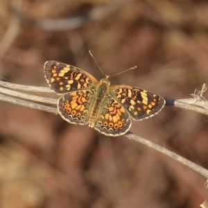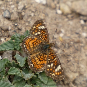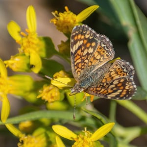 Phyciodes pallescens, commonly known as the Pale Crescent, is a species of butterfly belonging to the family Nymphalidae. It is primarily found in North America, particularly in the western regions. The wingspan of this insect ranges from 3 to 4 centimeters, and it is characterized by its pale orange-brown coloration with dark brown markings. The Pale Crescent is known to inhabit open grasslands, meadows, and forest edges, and it feeds on various flowering plants.