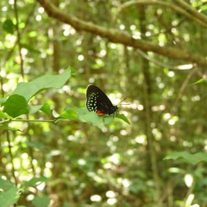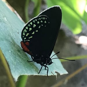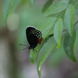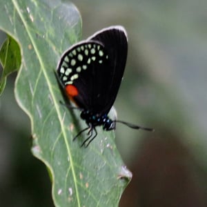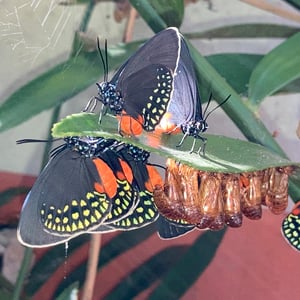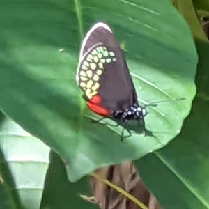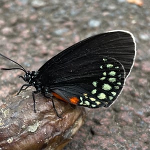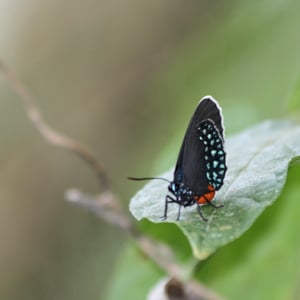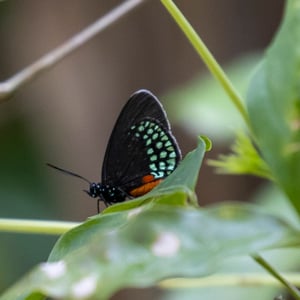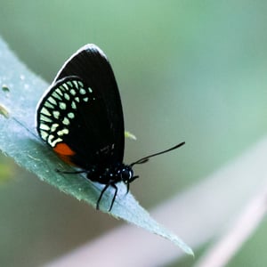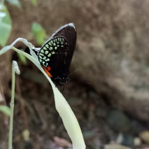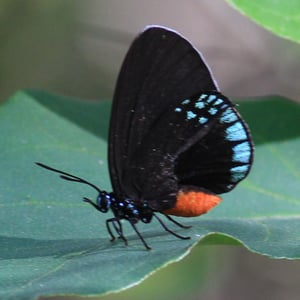 Eumaeus toxea is a small insect belonging to the order Lepidoptera. It is commonly known as the Toxea Blue butterfly. This species has a wingspan of approximately 2 inches and displays vibrant blue coloration on its upper wings, while the undersides are pale brown with orange spots. Eumaeus toxea is found in tropical regions, particularly in Central and South America.
