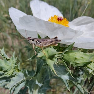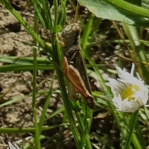 Melanoplus sanguinipes, commonly known as the migratory grasshopper, is a species of insect belonging to the family Acrididae. It is characterized by its medium to large size, ranging from 1.5 to 2 inches in length. This grasshopper species is known for its ability to migrate in large swarms, causing significant damage to crops and vegetation. It is typically found in grasslands and agricultural areas across North America.