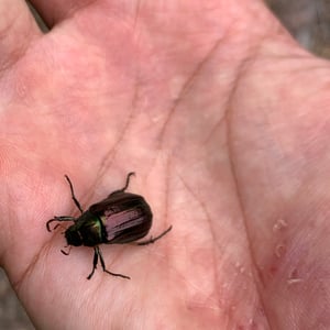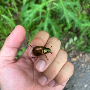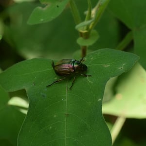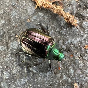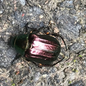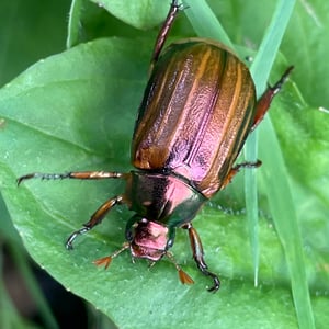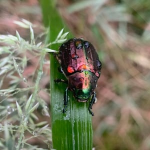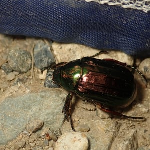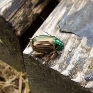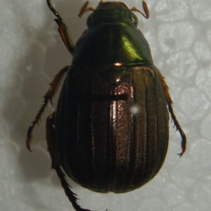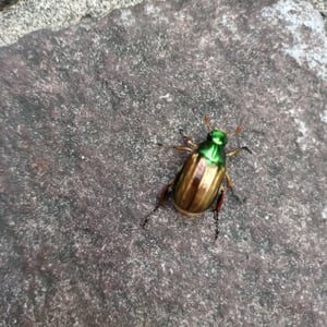 Mimela costata is a species of beetle belonging to the family Scarabaeidae. It is commonly known as the "striped flower chafer" due to its distinctive black and yellow striped pattern on its elytra (wing covers). This insect is typically found in North America and is known to feed on flowers and plant foliage. It plays a role in pollination and can be observed during the summer months.