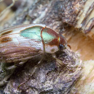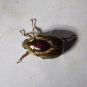 Mimela discoidea is a species of beetle belonging to the family Scarabaeidae. It is commonly known as the disco flower beetle due to its vibrant metallic green coloration. This insect is found in various regions of North America and is known for its distinctive disco ball-like appearance, with a rounded body and a convex shape. Mimela discoidea primarily feeds on decaying plant matter and is considered a beneficial species in ecosystems.