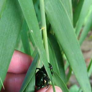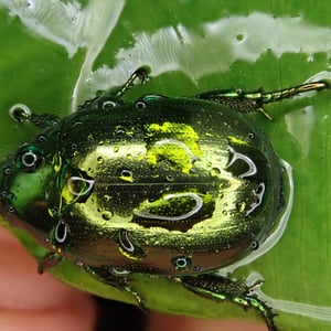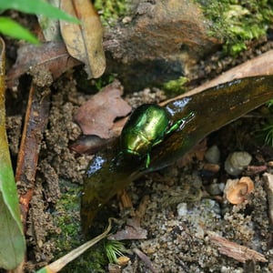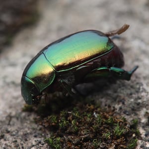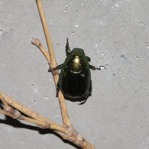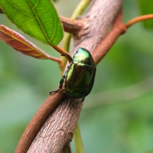 Mimela excisipes is a species of beetle commonly known as the excisipes leaf beetle. It is characterized by its vibrant metallic green coloration and distinctive elongated legs. This insect is primarily found in North America, where it feeds on the leaves of various plants, particularly those in the Asteraceae family. Its unique appearance and feeding habits make it an interesting subject of study for entomologists.