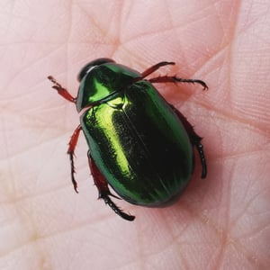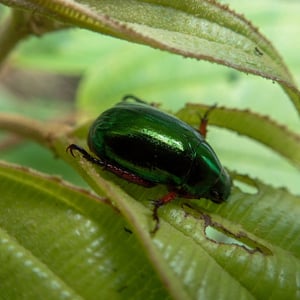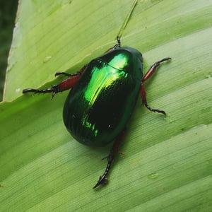 Mimela heterochropus is a species of beetle belonging to the family Scarabaeidae. It is characterized by its distinctive coloration, with each individual displaying a unique combination of colors on its body. These beetles are typically found in forested areas, where they feed on decaying organic matter. Their coloration serves as a form of camouflage, helping them blend in with their surroundings and avoid predators.