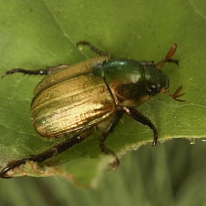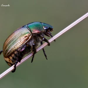 Mimela junii is a species of beetle belonging to the family Scarabaeidae. It is commonly found in North America, particularly in the eastern and central regions. This insect has a distinctive metallic green coloration on its body, with a slightly elongated shape and a size ranging from 10 to 15 millimeters. Mimela junii is known to feed on various plant materials and can be found in gardens, meadows, and forested areas.