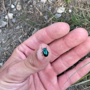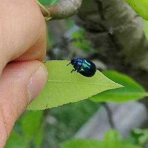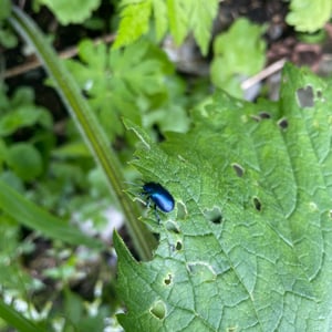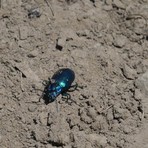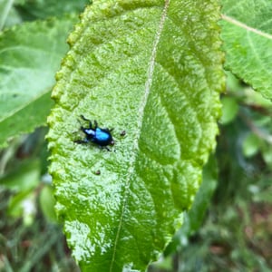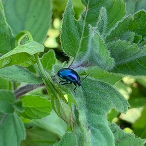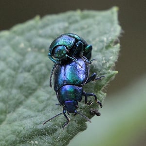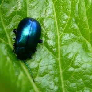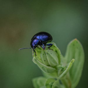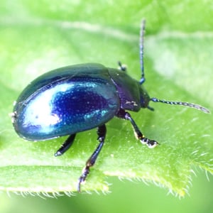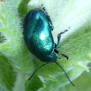 Chrysolina coerulans is a small, metallic blue-green leaf beetle commonly found in Europe. It has a compact body shape with a length of about 6-8 millimeters. This species is known for its vibrant coloration, which serves as a warning to potential predators. Chrysolina coerulans primarily feeds on various plants, particularly those belonging to the family Asteraceae.