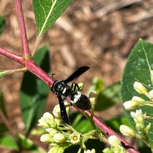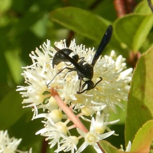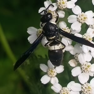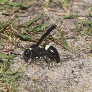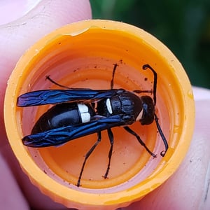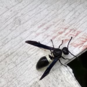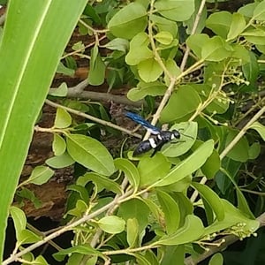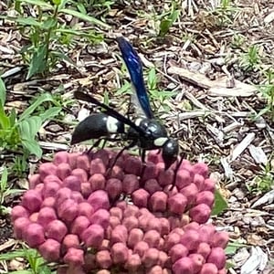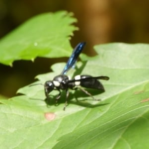 Monobia is a species of solitary wasp belonging to the family Sphecidae. These insects are commonly known as mud daubers due to their unique nesting behavior. Monobia wasps construct cylindrical mud nests, typically found attached to walls or other structures. They are beneficial insects as they prey on spiders, paralyzing them and storing them in their nests as food for their larvae.