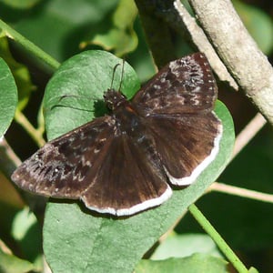 Erynnis tristis, the mournful duskywing, is a species of spread-wing skipper in the butterfly family Hesperiidae. It is found in Central America, North America, and South America. It is mottled brown with a white fringe on the hind wings. It appears similar to the funereal duskywing, but the mournful duskywing is more likely to appear in urban areas. The larva feed on young oaks while adults nectar from a variety of wild and garden flowers. The MONA or Hodges number for Erynnis tristis is 3953.