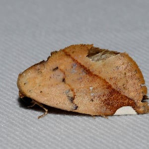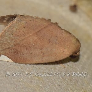 Its wingspan is about 26 mm. Female ochreous brown. Forewings with traces of sinuous antemedial line. A creamy-white triangular patch can be seen on costa before apex. An oblique rufous and ochreous line runs from apex to center of inner margin. There is an indistinct lunulate fuscous sub-marginal line. Hindwings fuscous and cilia ochreous. Ventral surface with narrow curved medial fuscous band and traces of submarginal band.