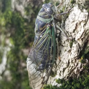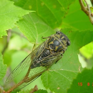 Neotibicen canicularis, commonly known as the dog-day cicada, is a species of insect belonging to the family Cicadidae. It is found in eastern North America and is known for its distinctive buzzing sound during the hot summer months. The adult cicadas have a black body with greenish markings and transparent wings. They have a lifespan of about 2-4 weeks and primarily feed on tree sap.