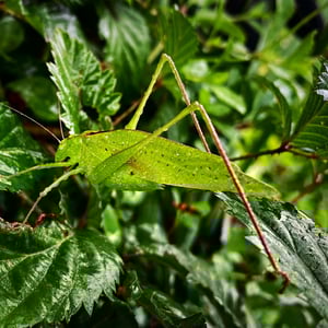 Amblycorypha oblongifolia, commonly known as the oblong-winged katydid, is a species of insect belonging to the family Tettigoniidae. It is found in North America, particularly in the eastern and central regions of the United States. This katydid species is characterized by its oblong-shaped wings, which are longer than its body. It produces a distinctive buzzing sound during its mating calls.
