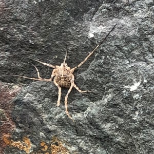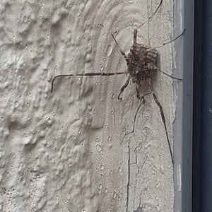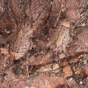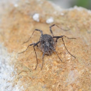 Odiellus spinosus can reach a body length of 6.5 - 8 mm in males, of 7 - 11 mm in females. This harvestmen shows three large, almost flat spines (hence the species name) in front of the eyes and a black-edged saddle on the back. Moreover the abdomen is distinctly flattened, with some rows of brown spots across each tergite.