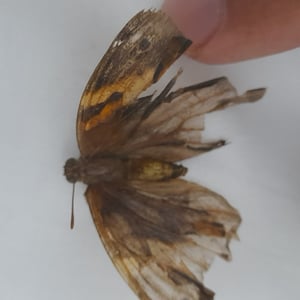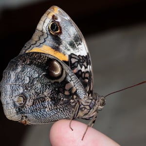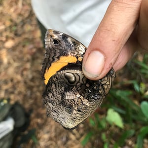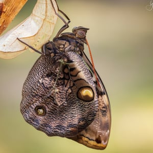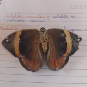 Opsiphanes invirae is a species of butterfly found in the tropical rainforests of South America. It belongs to the family Nymphalidae and is known for its striking appearance. The wings of Opsiphanes invirae are predominantly dark brown with intricate patterns of vibrant orange and yellow markings. This species is primarily active during the day and feeds on the nectar of various flowers.