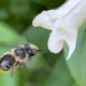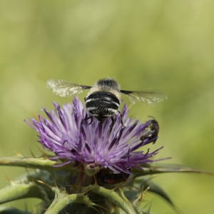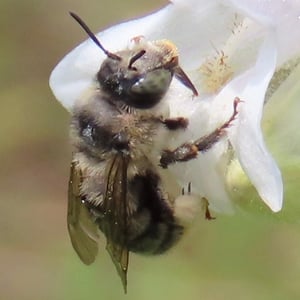 Anthophora terminalis is a species of solitary bee commonly found in North America. It is known for its distinctive appearance, with a robust body covered in dense black hairs. The females of this species are larger than the males and have a terminal abdominal segment that is pointed, giving them their name. They are important pollinators, particularly for plants in the Asteraceae family.