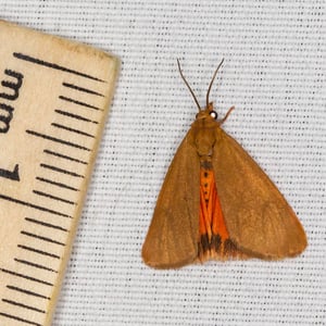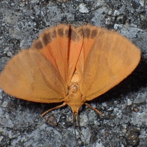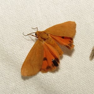 Virbia aurantiaca, the orange holomelina, is a moth species of the family Erebidae found in North America. In the east it has been recorded from Manitoba and Nova Scotia, south along the eastern seaboard to Cordoba in Mexico. It has also been recorded from Texas, Mississippi, Missouri, Tennessee, Louisiana, Oklahoma, Kansas, North Dakota and South Dakota. The length of the forewings is about 10 mm for males and 9.7 mm for females. The male forewings range from clay to cinnamon. The hindwings are peach red with a raw umber subterminal band. The female forewings range from salmon to cinnamon with a faint olive brown discal spot. The hindwings are peach red with a brown discal spot and brown subterminal markings. Larvae have been reared on dandelion and plantain species.