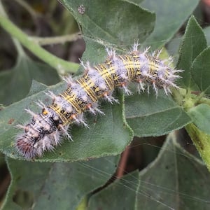 The main defence mechanisms of painted lady butterflies include flight and camouflage. The caterpillars hide in small silk nests on top of leaves from their main predators that include wasps, spiders, ants, and birds.