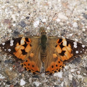 V. cardui occurs in any temperate zone, including mountains in the tropics. The species is resident only in warmer areas, but migrates in spring, and sometimes again in autumn. It migrates from North Africa and the Mediterranean to Britain and Europe in May and June, and from the Red Sea basin, via Israel and Cyprus, to Turkey in March and April. The occasional autumn migration made by V. cardui is likely for the inspection of resource changes; it consists of a round trip from Europe to Africa. For decades, naturalists have debated whether the offspring of these immigrants ever make a southwards return migration. Research suggests that British painted ladies do undertake an autumn migration, making 14,500 km round trip from tropical Africa to the Arctic Circle in a series of steps by up to six successive generations. The Radar Entomology Unit at Rothamsted Research provided evidence that autumn migrations take place at high altitude, which explains why these migrations are seldom witnessed. In recent years, thanks to the activity of The Worldwide Painted Lady Migration citizen science project, led by the Barcelona-based Institute of Evolutionary Biology (Catalan: Institut de Biologia Evolutiva), the huge range of migration has begun to be revealed. For example, some butterflies migrated from Iceland to the Sahara desert, and even further south. V. cardui is known for its distinct migratory behaviour. In California, they are usually seen flying from north to north-west. These migrations appear to be partially initiated by heavy winter rains in the desert where rainfall controls the growth of larval food plants. In March 2019, after heavy rain produced an abundance of vegetation in the deserts, Southern California saw these butterflies migrating by the millions across the state. Similarly, heavier than usual rain during the 2018-2019 winter seems to have been the cause of the extraordinarily large migration observed in Israel at the end of March, estimated at a billion individual butterflies. Painted lady migration patterns are highly erratic and they do not migrate every year. Some evidence suggests that global climatic events, such as el Niño, may affect the migratory behaviour of the painted lady butterflies, causing large-scale migrations. The first noticeable wave of migration in eastern Ukraine was noted in the 20s of April 2019. From May 15, numbers began to grow and it was possible to observe hundreds of this species in the Kharkiv region of Ukraine, including in the city streets of Kharkiv. Based on experimental data, the painted lady's migration pattern in northern Europe apparently does not follow a strict north-west heading. The range of headings suggests that migrating butterflies may adjust their migration patterns in response to local topographical features and weather, such as strong wind patterns. Laboratory-raised autumn-generation painted lady butterflies were able to distinguish a southern orientation for a return migration path. According to the same laboratory-based study, when butterflies were isolated from the sun, they were unable to orient themselves in a specific direction, opposed to those that did have access to the sun. This suggests that V. cardui requires a direct view of the sky, implying the use of a solar compass to orient its migratory direction and maintain a straight flight path.