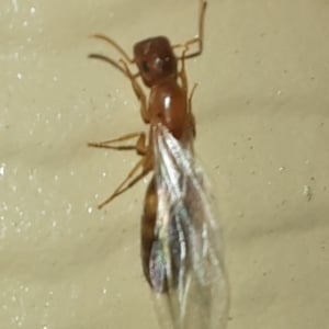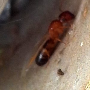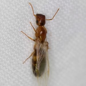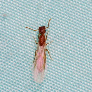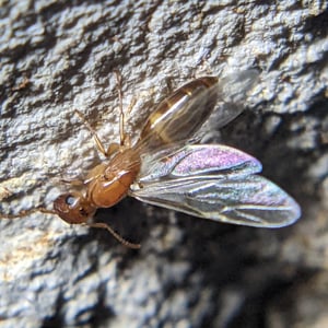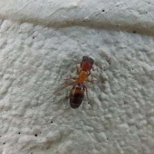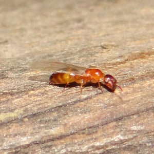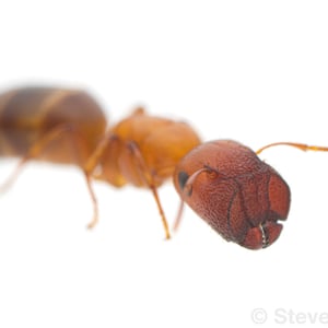 Colobopsis etiolata, commonly known as the twig ant, is a species of ant found in Southeast Asia. These ants are known for their unique adaptation of using their bodies to mimic twigs, allowing them to camouflage and blend seamlessly into their surroundings. They have elongated bodies and slender legs, resembling small twigs. Colobopsis etiolata colonies are typically found in forested areas, where they build their nests on tree branches or in leaf litter.