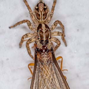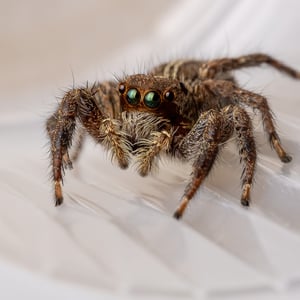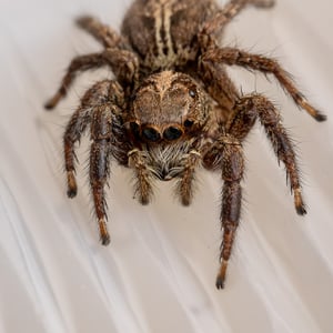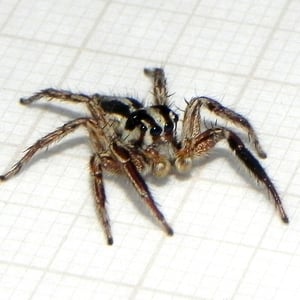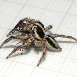 Plexippus paykulli is generally found living on and around man-made structures, in particular on buildings, although it has also been recorded from citrus groves and cotton fields. The female creates an eggsac about 3 cm in diameter in a concealed location under floorboards, in a crack or under eaves. In this a lens-shaped silken case is made into which 35 to 60 eggs are deposited. The female guards these until the spiderlings emerge and disperse some three to four weeks later. This spider does not spin a web but builds a silken retreat in an elevated position such as the edge of the ceiling from which it makes hunting forays. It has very acute eyesight and approaches its target prey stealthily, leaping on it when close enough. Prey species that have been recorded as being part of the diet include Diptera, Hemiptera, Hymenoptera, Lepidoptera, Odonata, Orthoptera and Aranea. In one study, these spiders hunted and consumed individuals of sixteen species of arthropods from fourteen families and six orders. They are reported as being a predator of mosquitoes in African houses, and of insect pests such as the cotton jassid in India and Bangladesh. They are highly agile and can cover many times their own body length in a single jump. In a building where the only available prey were German cockroaches, Blattella germanica, the spiders not only survived but also bred on this monophagous diet. They are able to successfully kill prey twice their own size. Large arthropods are injected with venom but are usually overpowered by brute strength before the venom has immobilized them. There have been records of the prey flying, jumping or running away with the spider clinging to it until the victim was eventually overpowered. A study investigated the way in which these spiders stalked their prey. It was found that a mobile prey like a fly was stalked in a different manner to an immobile one such as a maggot. On a camouflaged background, the spider approached with greater stealth and jumped from a shorter distance to attack a mobile prey. This gave the spider a greater likelihood of a successful outcome without prior detection. It was concluded based on a study that the protein fractions of Plexippus paykulli venom had bio-insecticide potential.