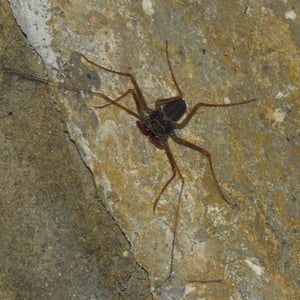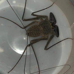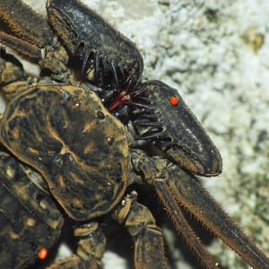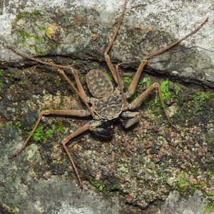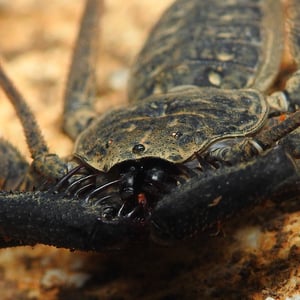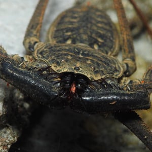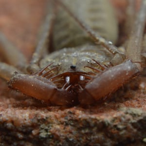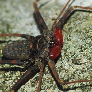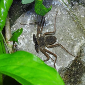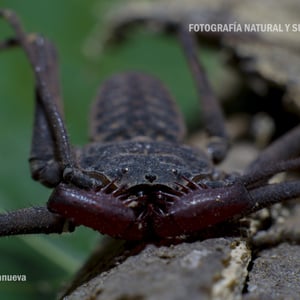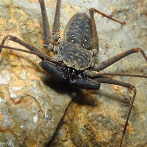Paraphrynus pococki is a species of whip scorpion, also known as a vinegaroon. It is found in the tropical rainforests of Central and South America. This insect has a unique appearance with a long, whip-like tail and large pincers. Despite its intimidating appearance, Paraphrynus pococki is harmless to humans and primarily feeds on small insects and spiders.