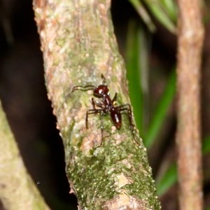 Paraponera, commonly known as the bullet ant, is a large and powerful insect found in Central and South America. It is known for its extremely painful sting, which is said to be as intense as being shot by a bullet, hence its name. Paraponera ants are known for their aggressive behavior and are considered one of the most venomous insects in the world. They play an important role in the ecosystem as predators, feeding on other insects and small invertebrates.