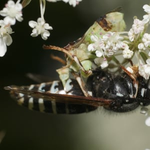 Dolichovespula arctica, commonly known as the Arctic yellowjacket, is a species of social wasp found in the Arctic regions of North America. It is known for its distinctive yellow and black coloration, similar to other yellowjacket species. These insects build paper nests in underground burrows or cavities, and their colonies consist of a queen, workers, and males. Despite the harsh Arctic conditions, Dolichovespula arctica has adapted to survive and thrive in this extreme environment.
