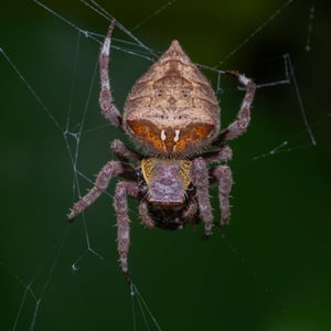 Parawixia audax, one of the better known species, makes a large loose web, placing itself either in the center with its head down or in a retreat created from a rolled-leaf. This species builds webs 1 to 2 m above the ground, but there are likely many more species farther up in the canopy that are rarely collected by usual means. Parawixia bistriata builds its webs much higher from the ground, frequently found on telephone poles. It is known to be social, and all individuals in a colony are of the same age and size. During the day, they share a retreat where they cluster together.