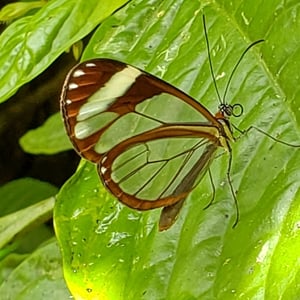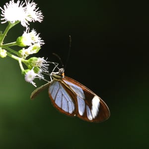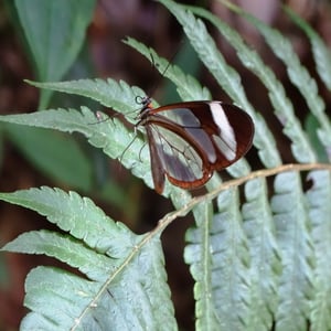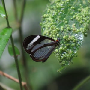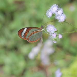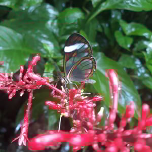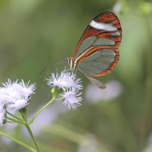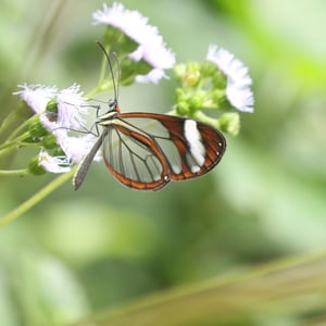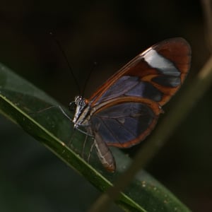 Ithomia patilla is a species of butterfly belonging to the family Nymphalidae. It is commonly found in the tropical regions of Central and South America. This butterfly has a wingspan of approximately 6-8 centimeters and displays vibrant colors, including shades of orange, black, and white. Ithomia patilla is known for its transparent wings, which aid in camouflage and protection from predators.